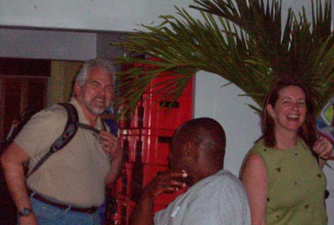 After visiting the falls we headed back to the boat to get ready for a not too early departure to Bequia the next day. We stayed in Bequia one night before heading to Chatham Bay on Union Island where we had the local Bar-B-Q on the shore. We left the next morning to spend two days at the Tobago Cays. The snorkeling was great (as usual). The turtles were very active. We watched them dive under water and feed. I want to know how they can hold their breath and eat at the same time. From the Cays we sailed directly back to St. Vincent. The wind was perfect; we sailed about 35 miles in six hours. We arrived at Young Island Cut and picked up a mooring from Charlie Tango. That evening, Pam and Bruce’s last night, we had a wonderful dinner at the Lime Restaurant and Pub. The next morning a Charlie Tango taxi took our guests to the airport for their trip back to the US.Visitors