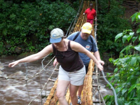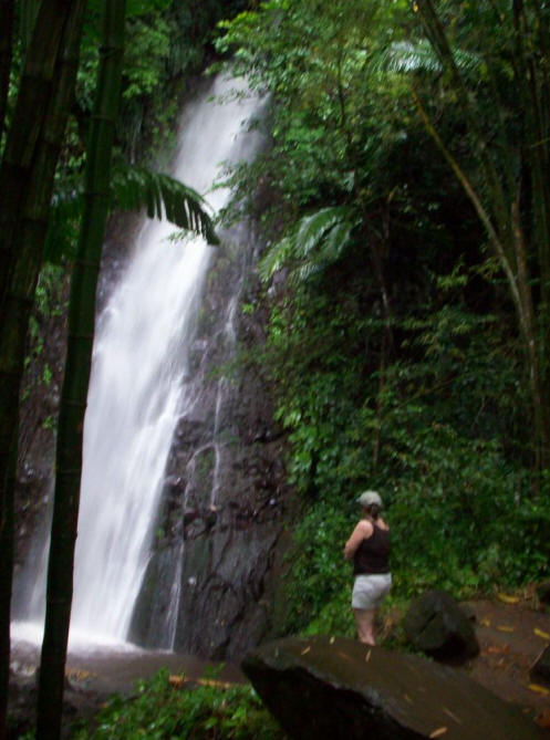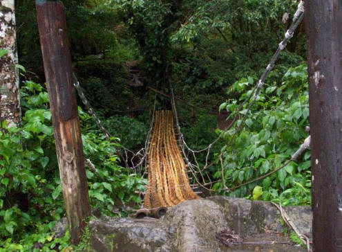 From Wallilabou we continue north to the Dark View Falls. Dark View Falls is comprised of two falls in a step configuration with elevations up to 229 feet. The falls are fed by the Richmond River. To get to the falls we needed to cross a river on a bamboo bridge.
