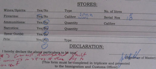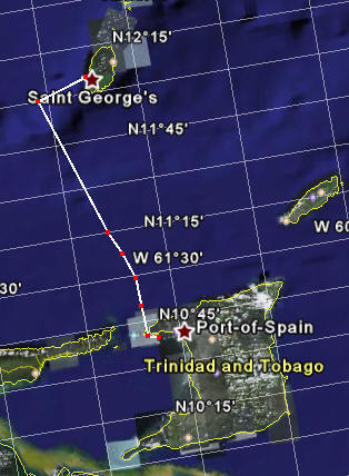 Thursday We have the <set to sarcasm on> "pleasure" <set to sarcasm off> of checking out through the Immigration and Customs Offices which are located at Crews Inn. I guess Linda and I should not complain, John and Genie have probably spent at least a total of a couple days in various Immigration and Customs Offices to get to Trinidad. Finally we are ready to leave. We stop by the duty free store to stock up on adult beverages and we are off around noontime. We head west from Chaguaramas and then turn