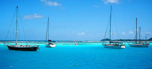 items we shared. Sunday morning, we head over to the airport to clear Customs and Immigration and book a flight to our connecting flight in St Vincent back to Trinidad and home on Monday. I had not previously booked this flight since the inter small island flights usually are not full and there are many flights each day. WRONG . . . It turns out you can't plan for everything. The local ferry had been broken down and was out of business for the last couple weeks and the only way off the island, other than a private boat, was by airplane. Nothing was available for a couple days, except for standby. We change our plans again. Instead of spending a day at Tobago Cays snorkeling a couple miles east of Union Island we decide to sail north to Bequia, which has lots of large ferries that go to St Vincent many times a day, about a 45 minute ride.