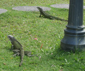 Finally our boat operator does get the motor running, but it is getting hard to see where we are going. None of these swamp boats have running lights. Our driver wants to pick up the speed and make up some time, so most of us move towards the bow to add weight to keep it down so he can see over it. Great, we can't see were we are going, but we are going to go faster. Finally, we can see car lights in the distance so we know we are almost back. Nearly bump into another boat that is also having engine problems, but fortunately for them they are not too far from the dock. Our cab driver has been waiting impatiently for us to take us back to the boat. We finally get "home" around 8:00PM, a long day. Saturday main activity is eating. We hit the local Roti shack for lunch. For dinner we have Bake & Shark, another local culinary treat. Although we were initially disappointed, because we keep hearing about the Bacon and Shark. Anyways the shark is fried and is in a fried dough pocket with all sorts of fixings. No one could explain what the Bake was about, but it was very good.