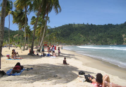We head for the popular Maracas Bay for swimming, but the Red Flags are up warning not to swim in the surf. Must be for tourists, some of the locals are swimming. We hang out at the beach for a couple hours and have lunch. Bake & Shark of course, still without the bacon.